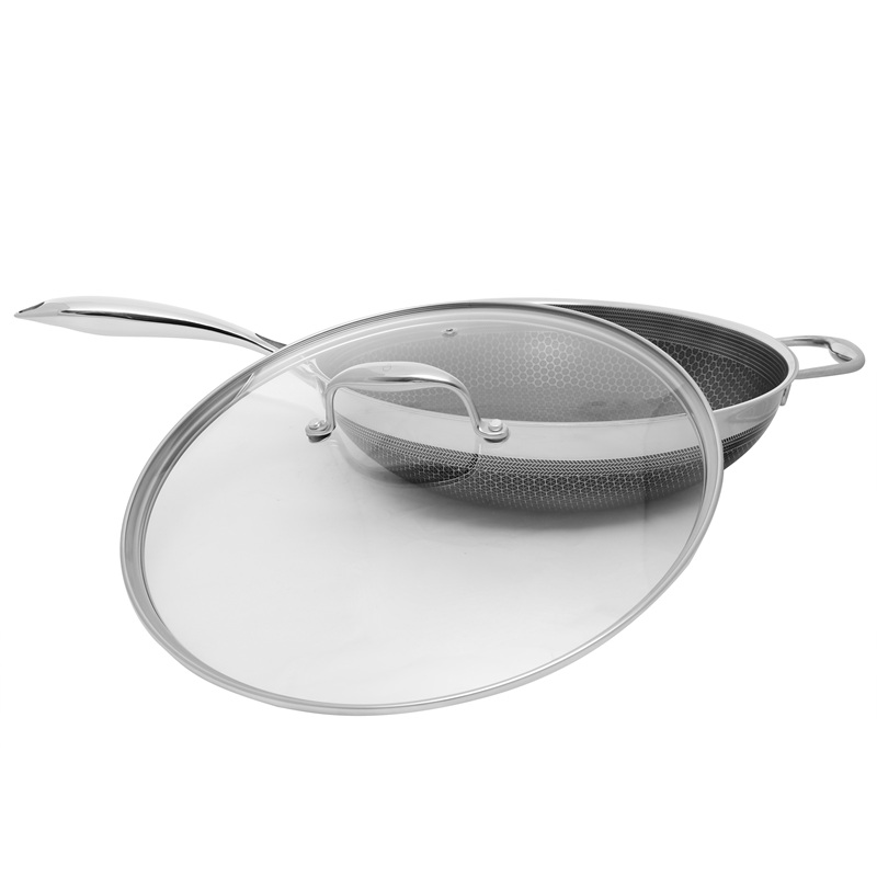 Konstrukcja TRI-PLY gwarantuje szybkie, równomierne nagrzewanie, a powierzchnia o strukturze plastra miodu chroni powłokę non-stick, umożliwiając korzystanie z metalowych akcesoriów bez ryzyka jej uszkodzenia.